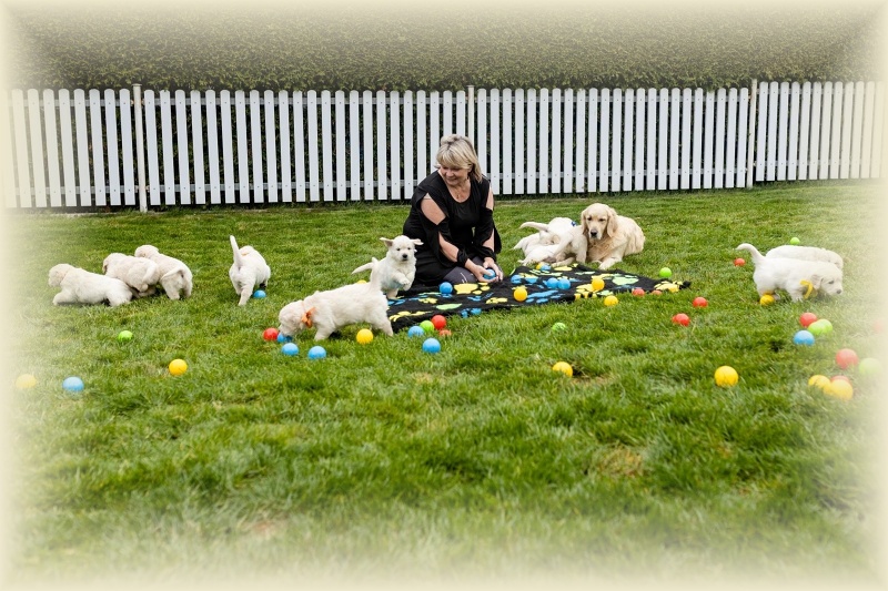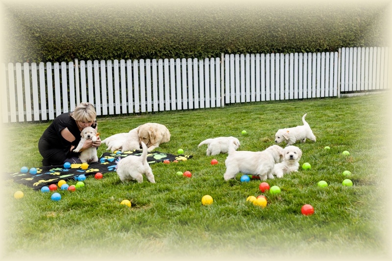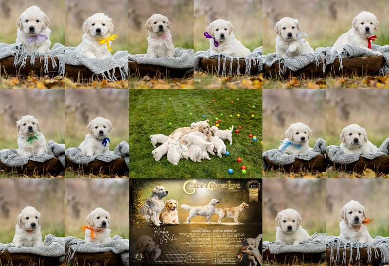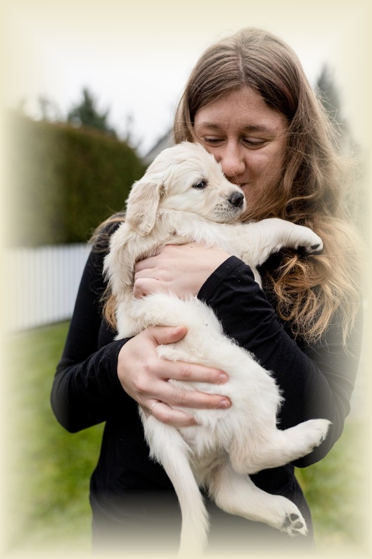 Na milou návštěvu přijel David s Jani a oběma kluky a Lucinka Kondělková. Spolu s nimi přijela i parta čtyř zlaťáčků a tak bylo veselo. David s Lucinkou se hned pustili do profi focení štěňátek. Šlo jim to jako po másle, ale holt 14 je 14. Obdivuji jejich sehranost. Děkuju vám, Luci a Daví, za tu krásnou práci, za to všechno, co jste pro mne znamenali ve chvílích štěstí, ale i obrovského strachu.