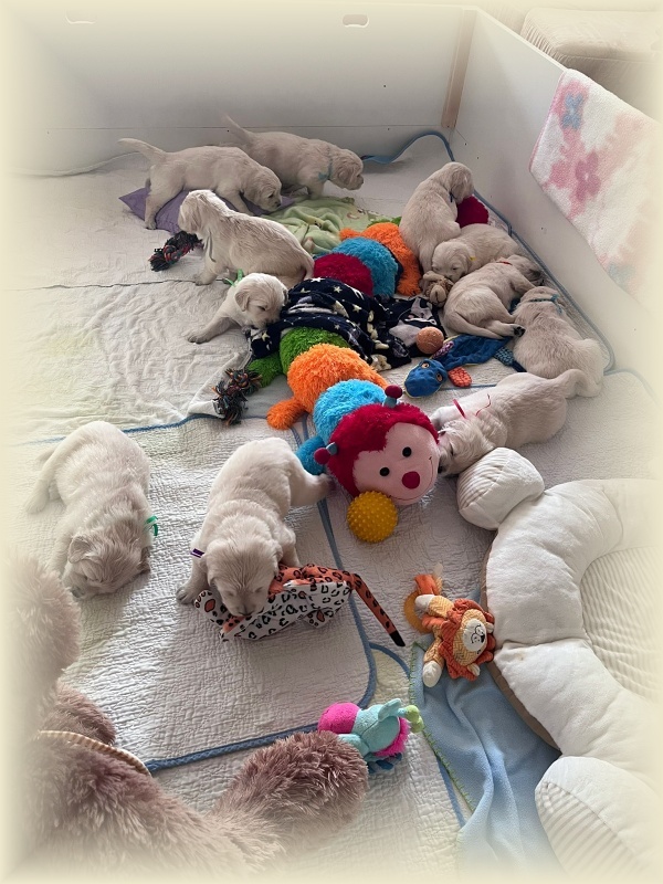 Štěňátka naše, rodiče máte báječné a budoucí domovy s milujícími rodinami na vás čekají. Budou vás milovat a udělají pro vás cokoliv. Co víc si může chovatel přát.
