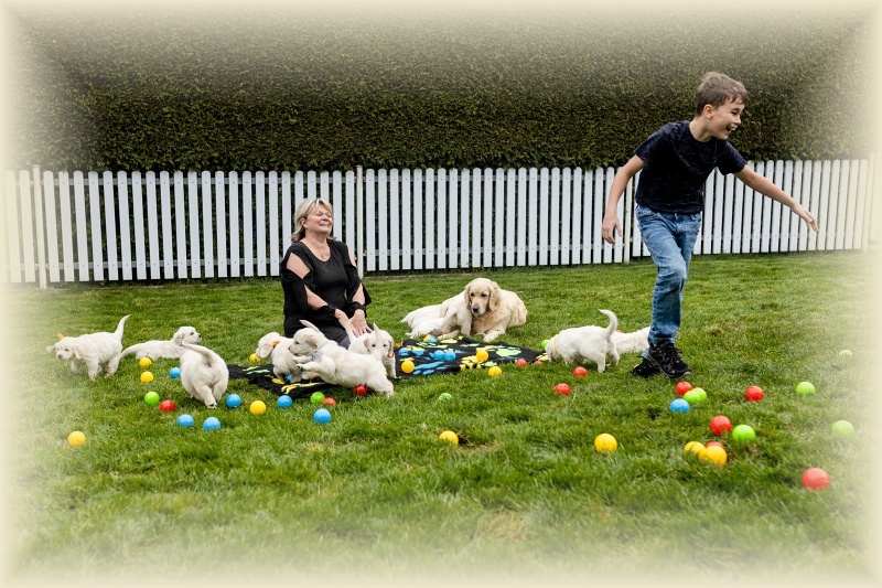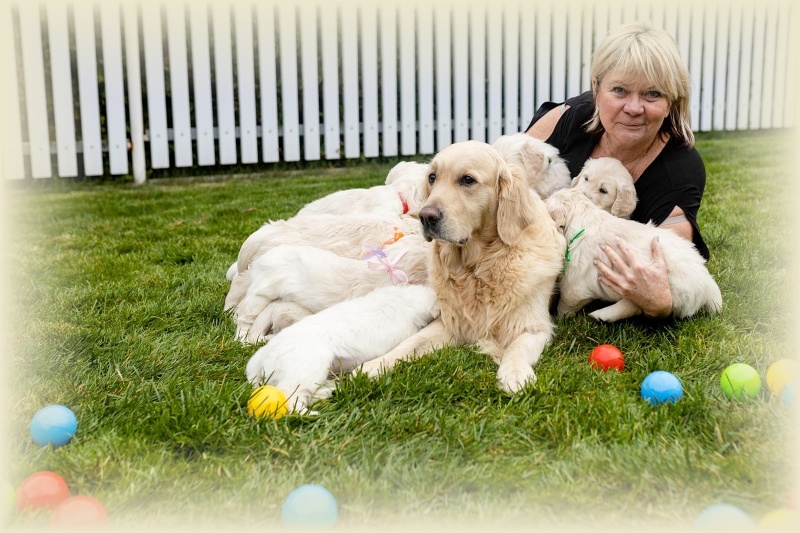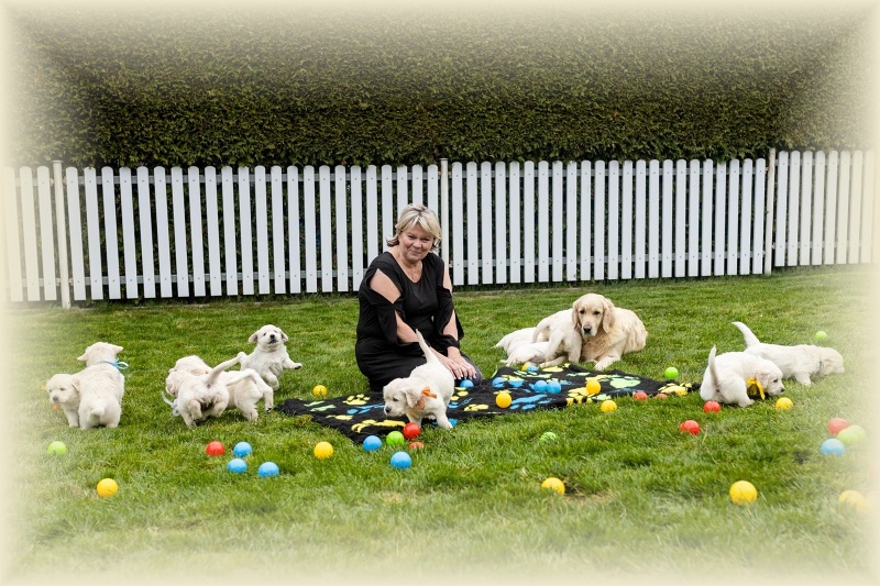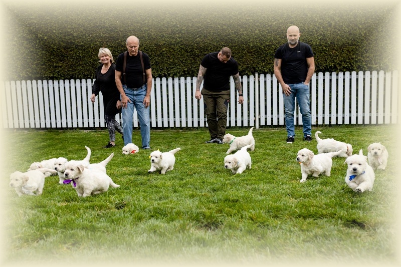 Na milou návštěvu přijel David s Jani a oběma kluky a Lucinka Kondělková. Spolu s nimi přijela i parta čtyř zlaťáčků a tak bylo veselo. David s Lucinkou se hned pustili do profi focení štěňátek. Šlo jim to jako po másle, ale holt 14 je 14. Obdivuji jejich sehranost. Děkuju vám, Luci a Daví, za tu krásnou práci, za to všechno, co jste pro mne znamenali ve chvílích štěstí, ale i obrovského strachu.