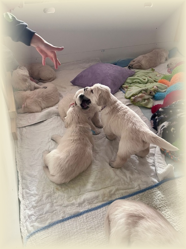 Štěňátka naše, rodiče máte báječné a budoucí domovy s milujícími rodinami na vás čekají. Budou vás milovat a udělají pro vás cokoliv. Co víc si může chovatel přát.